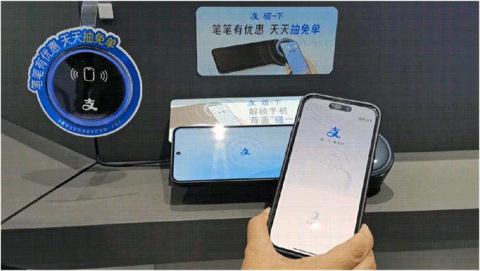 支付宝碰一下支付这样用:第一步解锁手机,第二步碰一下,不用打开App,支付就碰一下。