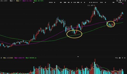 第二、在拉升的初期,股价击穿生命线,说明第一波拉升结束,随后将是洗盘阶段。