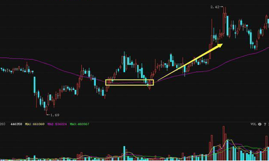 口诀三:趋势线上拐,逢低果断买