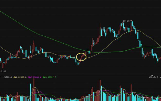 三金叉见底,简而言之就是均线、均量线与MACD的黄金交叉点同时出现,股价在长期下跌后开始启稳筑底,而后股价缓慢上升,这时往往会出现5日与10日均线、5日与10日均量线以及MACD的黄金交叉点,这往往是股价见底回升的重要信号。