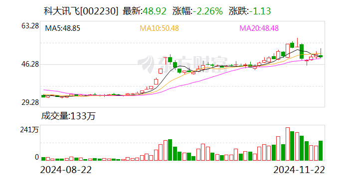 2024年前三季度,科大讯飞实现收入148.50亿元,归母净利润-3.44亿元。