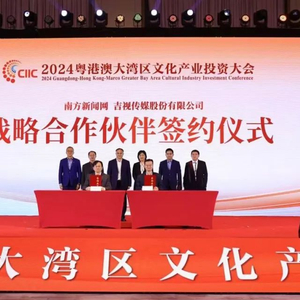 11月21日,在2024粤港澳大湾区文化产业投资大会上,吉视传媒与南方新闻网正式签订战略合作协议。双方将在融媒体数字平台建设、数字产品开发、政务信息服务、文旅业态打造、数字资源开发利用等五个方面开展全面合作。