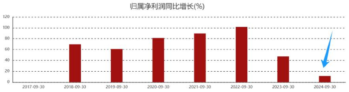 国联股份自上市以来至2023年的五年间,各年度前三季净利润同比增长率都超过40%,今年该指标只有11.41%。