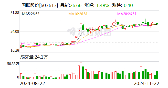 10月30日,国联股份发布了2024年三季报。报告显示,前三季度公司实现营业收入470.02亿元,同比增长26.13%;实现归母净利润11.2亿元,同比增长了11.41%。