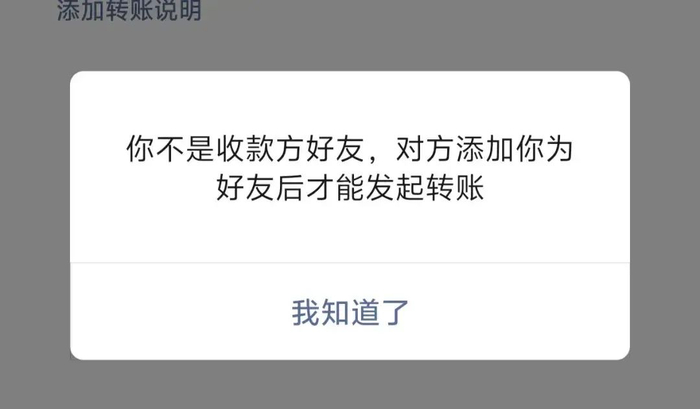 但如果你的好友少,你可以进行单一测试,就是每个好友转帐,当然不用真的转,如果对方删了你,你输入完金额,点转帐按钮的时候就会提示你「你不是对方收款方好友,对方添加你为好友后才能发起转帐」,这就说明你被ta单删了。