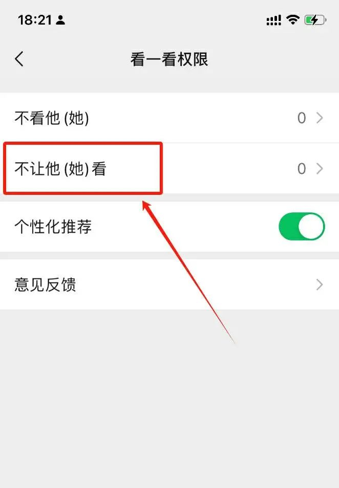 第二步:打开看一看的权限设置,在「不让他(她)看」里添加所有的联系人,好友多的可能比较麻烦,好友少就方便一些,添加完了点完成就可以了。