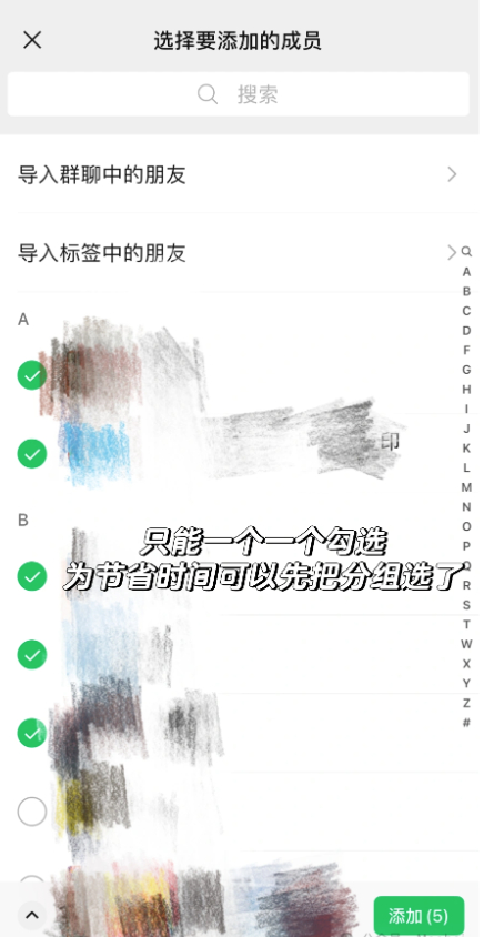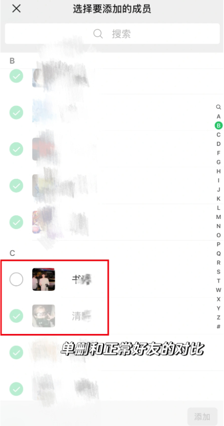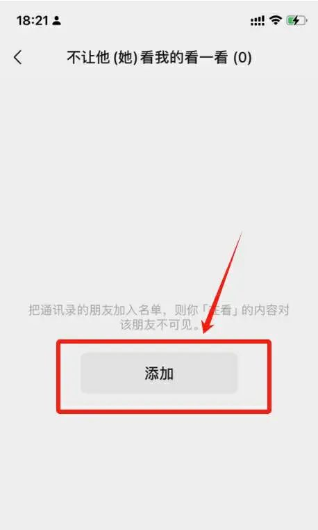 如果想看都是谁:再次点击「不让他看」,然后点击「添加」。