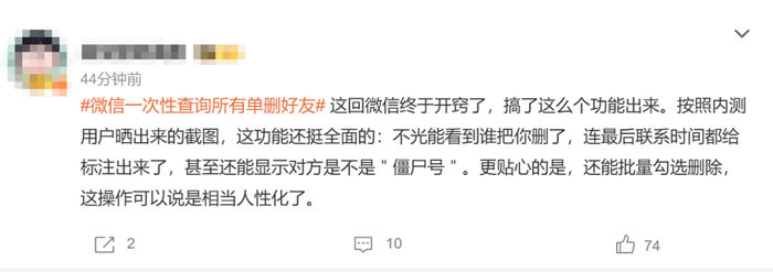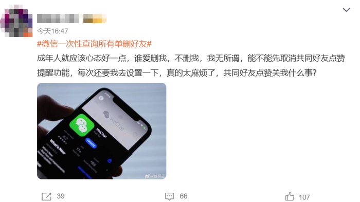 11月22日,#微信一次性查询所有单删好友#冲上微博热搜第一。