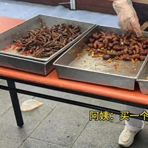 此前在上海财经大学校园美食节上推出的“特色油炸昆虫”。