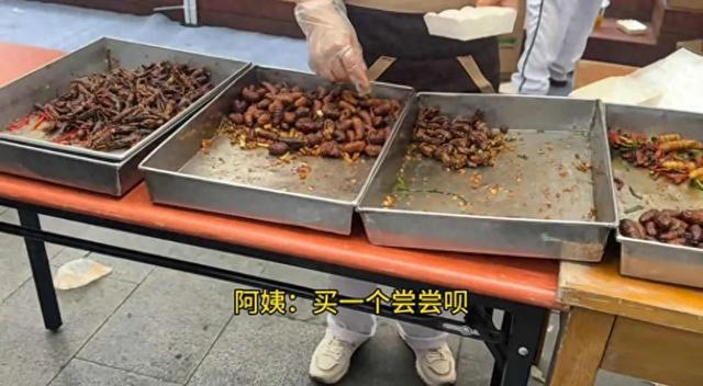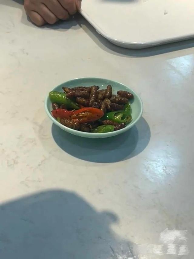 “看了眼价目表,感觉如果想尝试一下的话,成本不高。当时旁边一个女生买了一份小蚕蛹,然后食堂阿姨就去加工了一下,端出来一份配辣椒的。”刘同学介绍,周围同学对该特色菜品评价不一,大部分人还是以猎奇为主,也有尝试过的同学说“脆脆香香”。