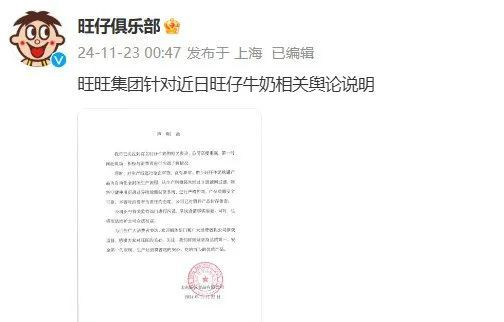 旺仔牛奶被曝“喝出异物”?旺旺集团回应