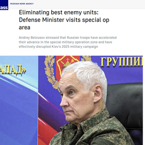 别洛乌索夫说,俄军在特别军事行动区的推进加快了速度,乌军拟在2025年发动的全部行动均被破坏。他还表示,乌军最强的部队已被歼灭。