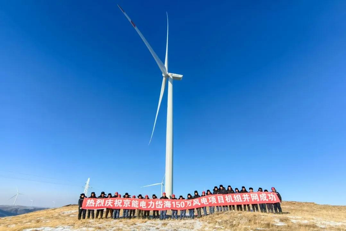京能电力乌兰察布150万千瓦“风光火储氢一体化”大型风电光伏基地项目首台风机成功并网