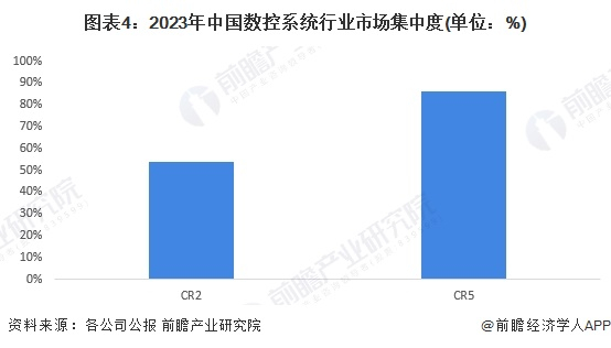 总体来看,我国数控系统行业的市场集中度较高,2023年,我国数控系统行业市场集中度CR2和CR5分别达到54%和86%。