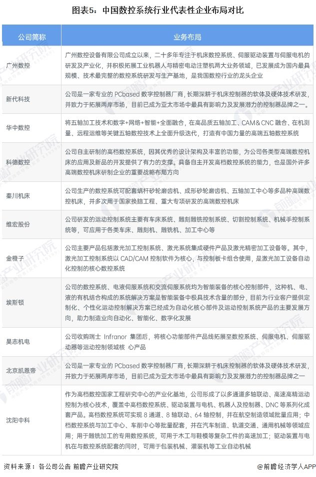4、中国数控系统行业企业布局