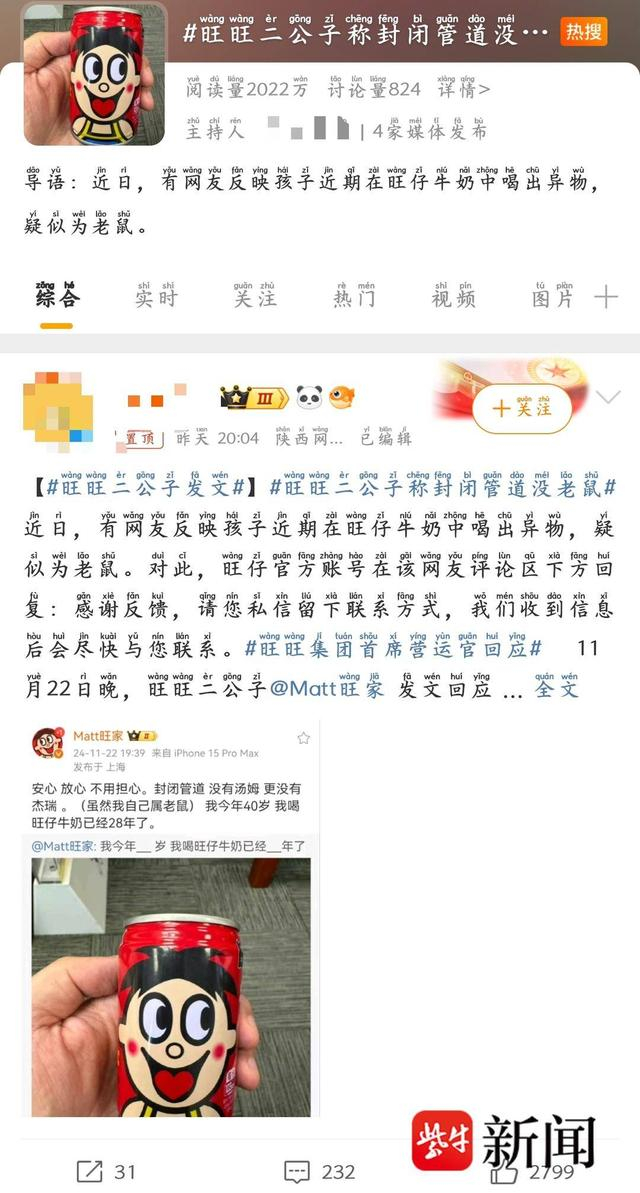 紫牛热点|旺仔官方深夜回应“喝出老鼠事件”后,当事人再发声:从未说过是老鼠
