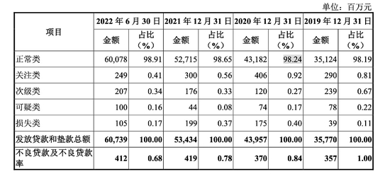 2019-2021年及2022年上半年,湖州银行的中型企业贷款余额分别为30.67亿元、33.11亿元、38.10亿元及44.30亿元,占公司贷款总额的比例分别为14.32%、12.13%、10.85%和10.39%;小微企业贷款余额分别为179.74亿元、233.10亿元、302.48亿元及371.53亿元,占公司贷款总额的比例分别为83.90%、85.38%、86.18%和87.10%。截至2022年6月30日,湖州银行中型和小微型企业贷款不良贷款率分别为2.02%和0.49%。
