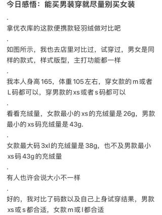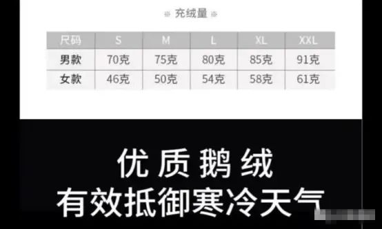 女性3xl码的充绒量,比男性s码的还要少6克。
