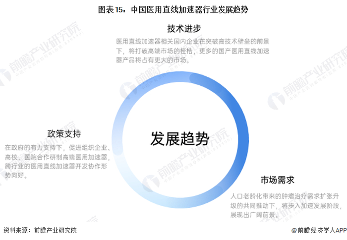 我国在高技术医疗设备领域加大了资金和政策支持力度,在政府的有力支持下,促进组织企业、高校、医院合作研制高端医用加速器,跨行业的医用直线加速器开发协作形势向好。随着医疗技术的持续演进,医用直线加速器相关国内企业在突破高技术壁垒的前景下,将打破高端市场的桎梏,更多的国产医用直线加速器产品将占有更大的市场。未来几年,医用直线加速器市场在数字化医疗技术进步、国家政策支持与人口老龄化带来的肿瘤治疗需求扩张升级的共同推动下,将步入加速发展阶段,展现出广阔前景。