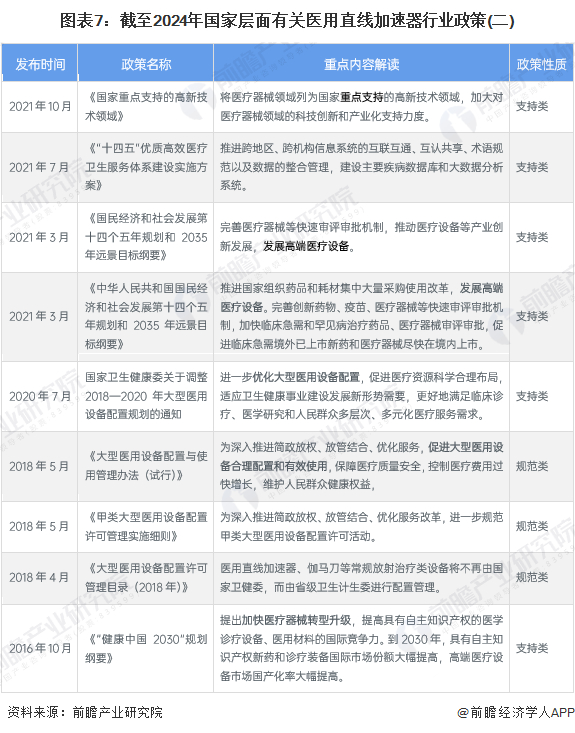 行业政策背景:政策加持,医用直线加速器行业发展前景向好