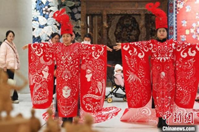 甘肃兰州:剪纸汉服作品《龙凤呈祥》《戏韵华裳》亮相