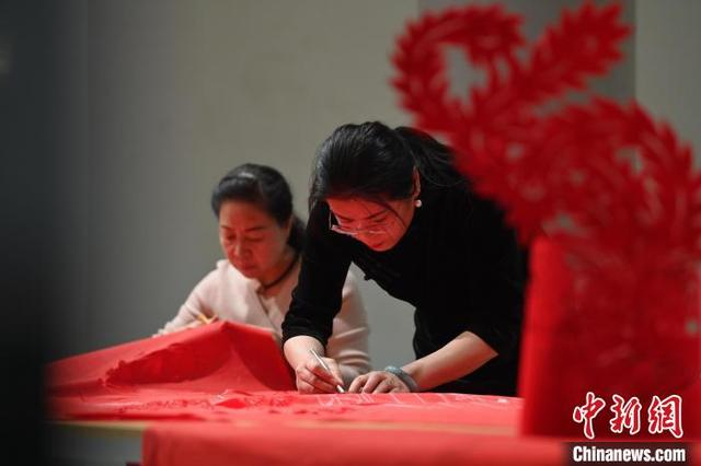 11月23日,甘肃省兰州市求古书院内,剪纸汉服作品《龙凤呈祥》《戏韵华裳》吸引游人。当日,剪纸汉服作品《龙凤呈祥》《戏韵华裳》经过最后的修剪固定后亮相求古书院。这两件作品都来源于剪纸非遗传承人杨树珍,《龙凤呈祥》寓意夫妻间比翼双飞,《戏韵华裳》则将传统戏曲文化、剪纸文化与汉服文化进行了结合。中新社记者 李亚龙 摄