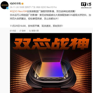 IT之家 11 月 24 日消息,iQOO Neo10 系列手机将于 11 月 29 日 16:00 发布即开售,该机全系搭载蓝厂旗舰同款影像: