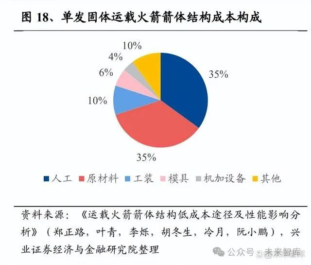 “三化”设计即指模块化、标准化、通用化设计。据《运载火箭箭体结构低成本途径及性能影响分析》(郑正路,叶青,李烁,胡冬生,冷月,阮小鹏)分析,在 结构设计时,对运载火箭的箱间段、级间段等均匀承载的部段通过统一条布局以 及端框、中间框、开口等实现结构部段的产品化,对于承力壁板、仪器支架、星 箭接口等可做成通用化、标准化部件,通过简化设计、降低模具成本减少结构成 本。 此外,还可以实现配件批量化生产。通过建造专门的火箭智能生产线,建设零部件立体仓库及智能物流系统,提高生产转运效率,并采用火箭生产数字化管理系 统,实现型号生产的数字化管控,通过规模效应不断摊薄火箭成本。据《运载火 箭箭体结构低成本途径及性能影响分析》(郑正路,叶青,李烁,胡冬生,冷月, 阮小鹏)分析,假定某固体火箭结构系统单套的成本为 240 万元,当需要大批量 生产时需要当投入的智能化生产线的费用为 11000 万元。当产量为单发的情况下, 结构成本主要集中在材料费和人工费上。但当年产量持续增加的情况下,为提高 效率,引入智能化生产线进行大批量生产,当产量大于 92 套(发)时批量化生 产的成本小于单套(发)生产的成本,由此实现降本目标。