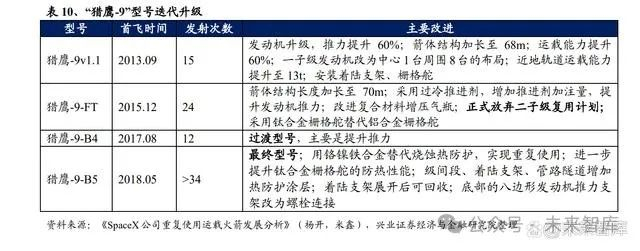 2011 年 9 月,马斯克正式披露猎鹰-9 火箭垂直起降返回着陆方案,开启了火箭回 收和复用的历程。据《SpaceX 公司重复使用运载火箭发展分析》(杨开,米 鑫),SpaceX 公司的垂直起降技术研究大致可以分为技术验证、型号迭代升级 和稳定应用三个阶段。 在技术验证阶段,SpaceX 公司主要采用验证机飞行试验+发射任务验证相结合的 方式。从 2010 年启动研制到 2015 年首次成功回收一子级,公司用大约 5 年时间 完成了研制和转化应用。同时,SpaceX 坚持技术验证和技术应用同步进行,通 过 8 次发射任务和 4 次受控返回试验来验证垂直起降技术,持续改进和优化垂直 起降技术。 在型号迭代升级阶段,SpaceX 公司经过多年的研发和验证,成功将垂直起降技 术应用到实际发射任务中,实现了运载火箭的重复使用。2015 年 12 月公司在陆 地上成功完成了火箭一子级回收。由于海上回收一子级在返回着陆过程中无需进 行大范围横向机动,可以节省推进剂和预留燃料,实现成本最优,公司转向尝试海上回收,并于 2016 年 4 月成功利用海上平台回收一子级,基本掌握了垂直起 降技术。公司不断对“猎鹰-9”进行迭代升级,经过 5 年时间形成猎鹰-9-B5 最终 构型。