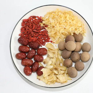 秋月梨,银耳、百合、枸杞、红枣、桂圆、冰糖、食盐