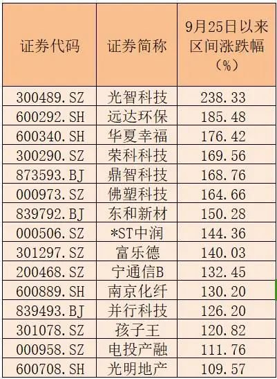光智科技、远达环保、华夏幸福、荣科科技、鼎智科技、佛塑科技等15家上市公司股价翻倍。其中,华夏幸福出现15个涨停,远达环保出现13个涨停,光智科技出现8个涨停。华夏幸福和远达环保上榜龙虎榜次数多达10次,光智科技上榜5次。