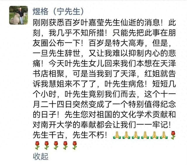 记者获悉,古典文学研究专家、教育家、诗人叶嘉莹,于2024年11月24日下午逝世,享年100岁。