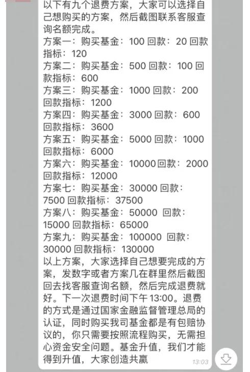 “客服”称,之前的公司被一家基金公司收购了,所以现在提供的退款渠道只能通过购买基金增值的方式进行,并且还发送了伪造的营业执照打消其顾虑。随后,将信将疑的朱先生就在客服的指导下下载了一款金融理财app,并根据回款方案购买了基金。