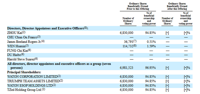 周凯 ZHOU Kai,持有和控制683万股、占94.85%;