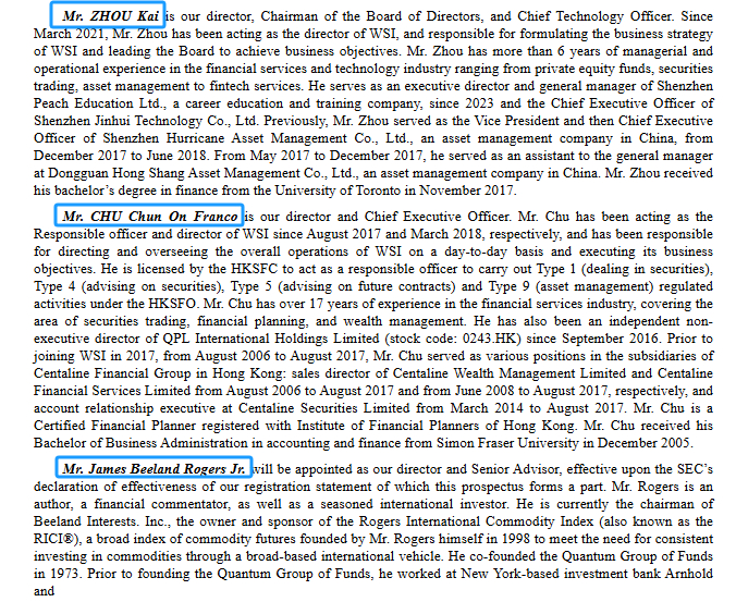 WSI在全球范围内积累了企业和个人客户群,截至2024年3月31日,WSI拥有超过 2,900名在WSI开立交易账户的证券经纪客户,其中33名是开立公司账户的公司客户,1 名是开立综合账户的介绍经纪客户。其余证券经纪客户是开立个人账户的个人客户,通常通过WSI的交易平台APP进行交易。截至同一日期,WSI 拥有超过600名活跃客户,他们是交易账户中有资产的注册客户。我们从WSI的证券经纪、债券分销及其他辅助服务产生经纪及佣金收入,从WSI的保证金融资服务产生利息收入。