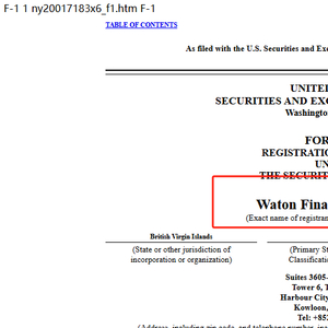 华通证券国际 Waton Financial,来自香港,递交IPO招股书,拟赴美国上市