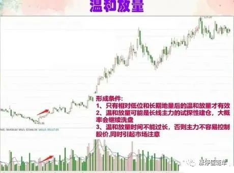 1、股价突然扬升,成交量急剧放走,与上文底部阶段股价启动的表现有所不同,在无任何先兆的情况下,股价突然扬升,成交量急剧放大。说明个股基本面可能发生很大变化,出现快速拉高的建仓行为;