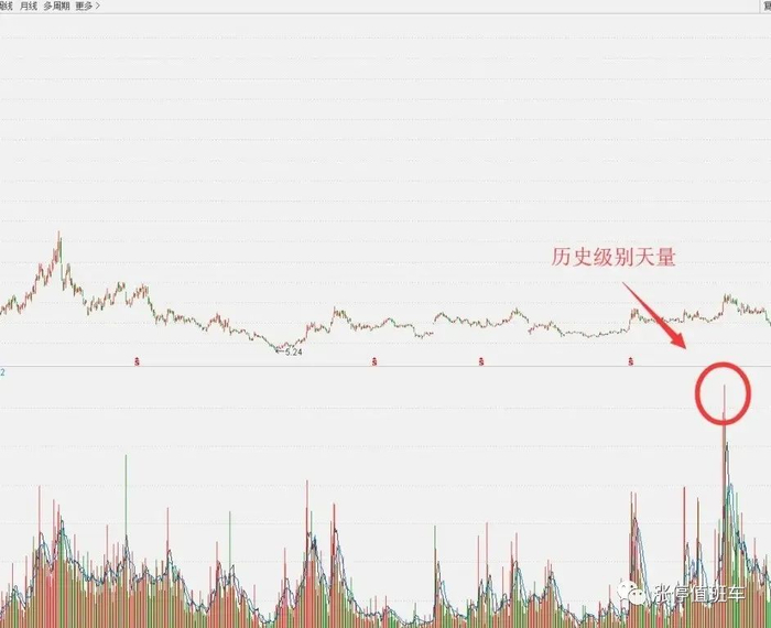 天量!顾名思义,天量就是量能释放的非常巨大,直冲天际!也可以把它定义为该股票历史最大的量能!
