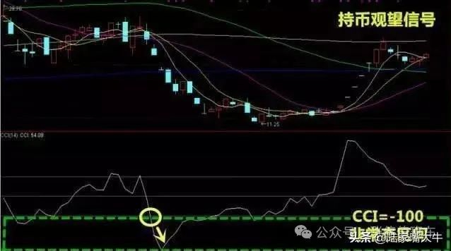 4、当CCI曲线向下突破﹣100线而进入另一个非常态区间时,表明股价的弱势状态已经形成,投资者应以持币观望为主。