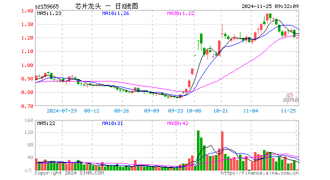 11月25日,半导体龙头ETF(159665)开盘跌0.50%,报1.195元。半导体龙头ETF(159665)重仓股方面,中芯国际开盘跌0.01%,北方华创跌1.07%,海光信息涨0.12%,韦尔股份涨0.03%,中微公司跌0.61%,澜起科技跌0.49%,寒武纪涨1.60%,兆易创新涨0.73%,长电科技跌0.10%,三安光电涨0.08%。