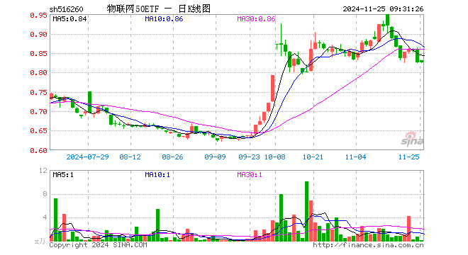 11月25日,物联网50ETF(516260)开盘涨0.61%,报0.830元。物联网50ETF(516260)重仓股方面,立讯精密开盘涨0.03%,中际旭创涨0.17%,汇川技术跌0.41%,中兴通讯跌0.45%,韦尔股份涨0.03%,美的集团跌0.40%,科大讯飞涨2.51%,海尔智家涨0.93%,海康威视跌0.03%,兆易创新涨0.73%。