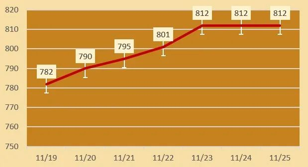 | 周六福 | 黄金价格 | 812元/克 | 持平 |