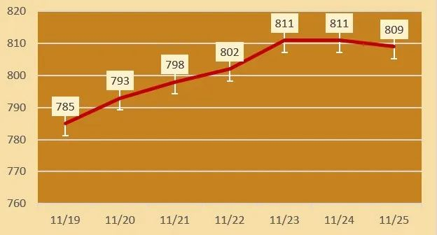 | 老凤祥 | 黄金价格 | 809元/克 | 跌2 |