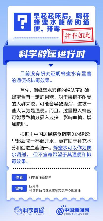 中新真探:早起起床后,喝蜂蜜水能帮助通便排毒吗?