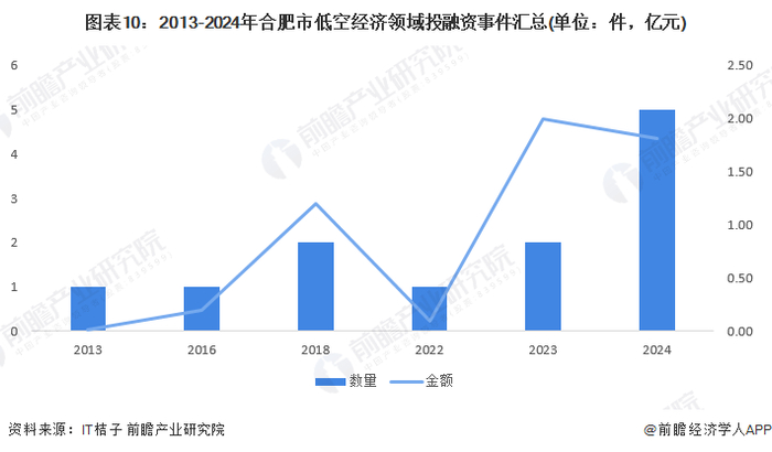 2016年以来,合肥市低空经济领域投融资事件数量呈现波动上升趋势,2024年截至11月,合肥市投融资事件数量已经达到5件,高于其他年份;投融资金额方面,2023投融资金额达到2亿元,为近年来投融资金额最大的一年。