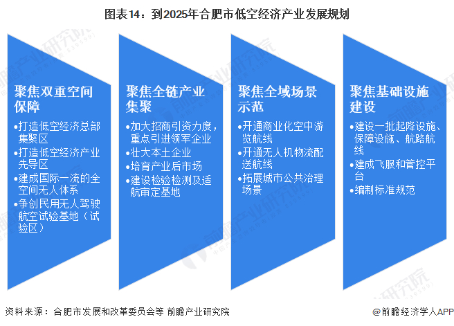 根据《合肥市低空经济发展行动计划(2023—2025年)》的规划,2024年,合肥初步形成完备的低空经济产业链。2025年,基本建成具有国际影响力的“低空之城”。
