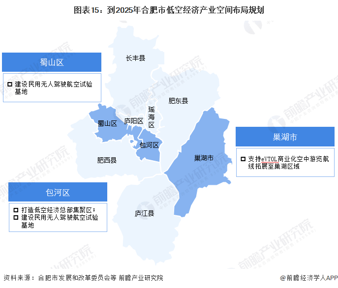 到2025年合肥市低空经济产业发展空间布局规划如下: