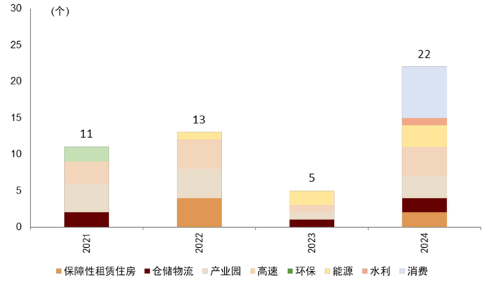注:1)统计年内上市项目个数;2)数据截至2024年11月21日 资料来源:Wind,REITs公告,中金公司研究部