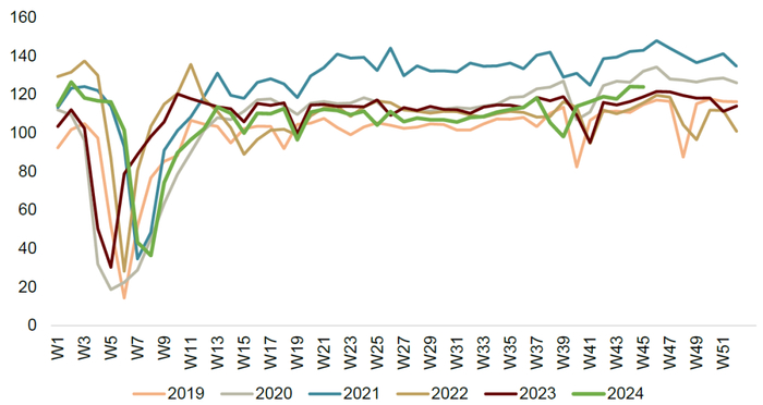 注:1)数据截至2024年11月21日;2)以2023年12月29日为基期,基期=100