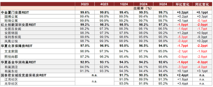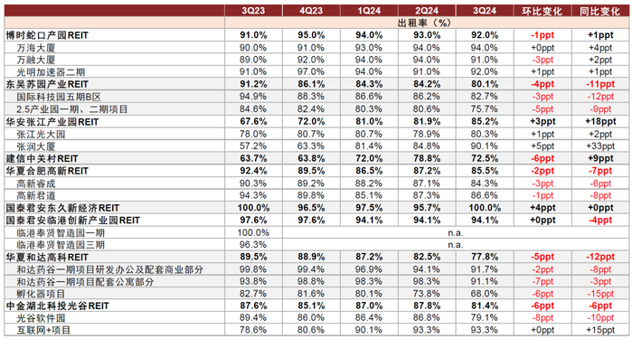 注:截至9月30日 资料来源:Wind,REITs季报,中金公司研究部